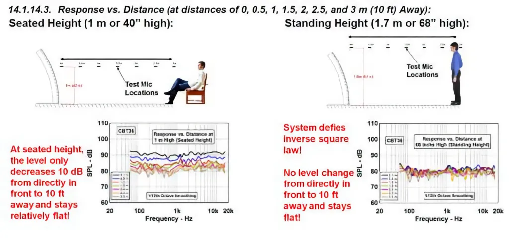 To understand why these speakers sound so magical, you have to look at the theory behind Constant Beamwidth Transducers (CBT). Invented by legendary audio engineer D.B. "Don" Keele Jr., the CBT design utilizes a curved line array paired with electrical "shading" (progressively lowering the volume of the drivers toward the top).