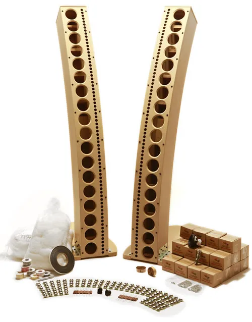 I started looking online to see what it would actually take to build a set. Parts Express offered a complete kit that included the CNC-cut woodwork, all the main elements, tweeters, resistors, and wiring.