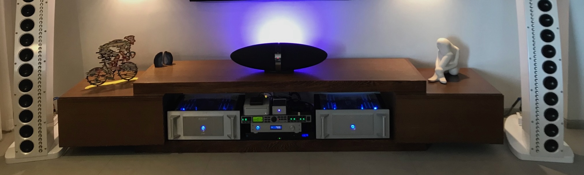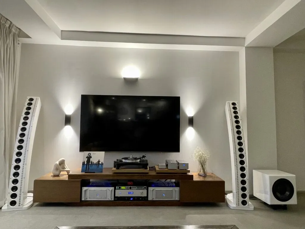 Setting it up involves meticulously inputting a specific EQ curve and dialling in the crossover points between the full-range drivers and the tweeter arrays. It is much more elaborate than a traditional setup.