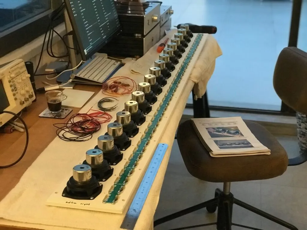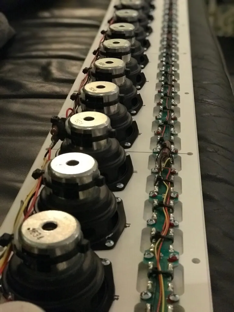 - Placing and securely screwing down the 18 full-range drivers.